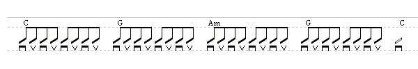 (以下、楽譜はリズム譜とコード名、ストローク記号だけを載せたものにします)